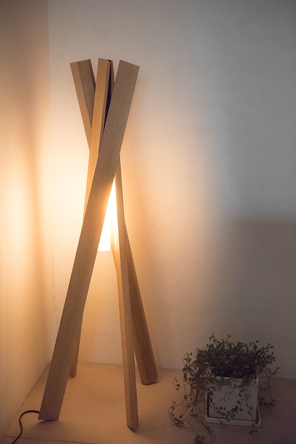 SEIは4枚の板をひねることにより明るさを調節できる、フロアライトとペンダントライトです。4枚の板から木洩れる優しい光が日常に寄り添い温かく照らします。